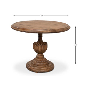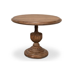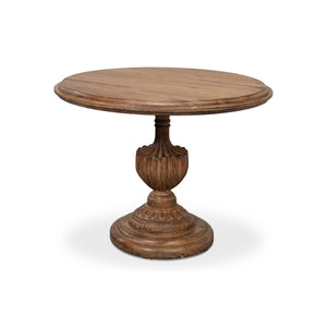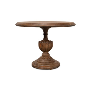 Its 40" round top is perfectly proportioned and sits atop a beautifully molded and stepped urn form pedestal, creating a unique and eye-catching piece that is sure to draw compliments. With dimensions of 40" W x 40" D x 30" H, it is the perfect size for intimate dining, coffee catch-ups with friends, or even as a chic statement piece in a stylish home office.