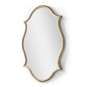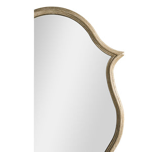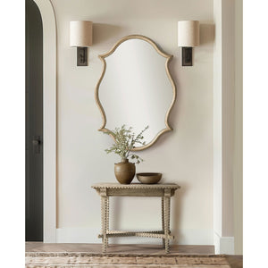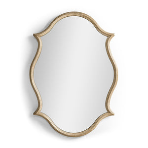 The Oak Venetian Mirror brings whimsy and elegance to any space, making it a refined statement piece. Its Venetian white oak frame with antique gold leaf accents exudes timeless sophistication. The baroque-inspired silhouette, with graceful curves and subtle points, balances vintage charm and modern luxury.