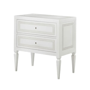 With working locks on the two drawers and raised on square tapered legs, this bedside chest is not only beautiful but functional as well.