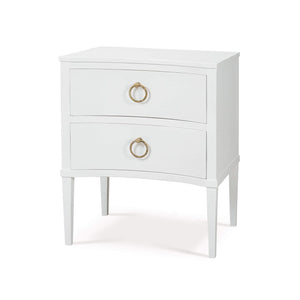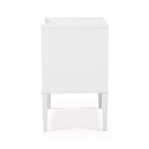 Introducing our Painted White Neo Classic Incurved Nightstand, a stunning embodiment of elegance and functionality. Made of mahogany and finished in a lightly distressed architectural white painted finish, this bedside table showcases the timeless beauty of classic design with a contemporary twist.