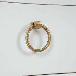 The incurved front adds a distinctive touch, while the two drawers provide ample storage for your essentials. Each drawer is adorned with elegant ring pulls, adding a touch of refined charm to this exquisite piece.