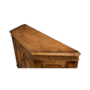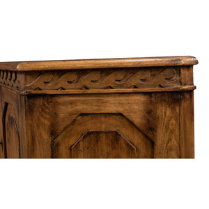 A masterful fusion of shape, scale, and craftsmanship, the Reclaimed Pine Credenza, finished in an exquisite hand-rubbed medium brown finish, is a statement of timeless elegance. Crafted from reclaimed pine, this sophisticated piece features canted ends and intricate Vitruvian scrolls, adding a refined architectural element to any interior.