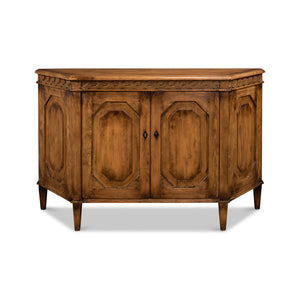 With ample storage behind two central cupboard doors. Raised on square tapered legs, it exudes a delicate balance of strength and grace.