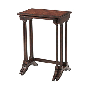 Perfect as accent tables or functional nesting pieces, these tables seamlessly complement both traditional and modern interiors. The rich burl wood grain enhances their luxurious appeal, making them an heirloom-worthy statement for any home. Whether placed beside a sofa or used as an elegant display surface, this set captures the essence of Regency-era refinement with contemporary practicality.