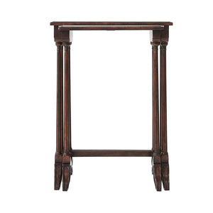 Exuding timeless elegance, the Regency Burl Nest of Tables is a refined addition to any sophisticated interior. Crafted in the classic English Regency style, this nest of two tables features exquisite ash burl veneer tops with a beautifully molded edge. The delicate turned and fluted supports, resting on graceful sleigh feet, evoke the grandeur of early 19th-century craftsmanship while maintaining an air of versatility.