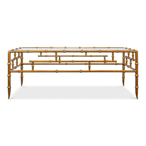 Introduce a touch of classic elegance to your home with the Regency Gilt Bamboo Coffee Table. Measuring 48 inches in width, 24 inches in depth, and 18 inches in height, this table is a perfect blend of traditional design and sophisticated style.