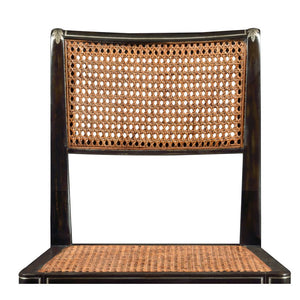 Designed with a cane back and seat, this armchair offers a harmonious blend of comfort and style. A removable cushion in creamy white fabric adds a touch of softness, making it perfect for long gatherings.