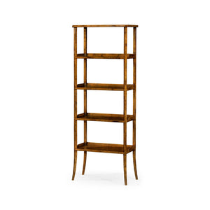 Crafted from premium walnut, the etagere boasts an antiqued rustic finish, adding warmth and character to any room. Measuring 30.5" wide, 16" deep, and 80" high, it provides ample space to display your favorite books, decor, and collectibles. Whether placed in a living room, study, or hallway, this piece seamlessly blends style and functionality, making it a perfect addition to your sophisticated interior design.