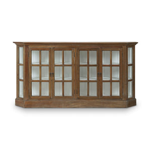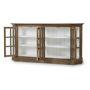 Enhance your home with the timeless charm of this Rustic Display Cabinet, featuring a lightly distressed straw wash finish and a white-painted interior. Crafted from solid mahogany, this cabinet exudes rustic elegance with its natural finish that beautifully highlights the wood's character. The canted corners and framed glass doors add a touch of sophistication while allowing a clear view of your cherished items.