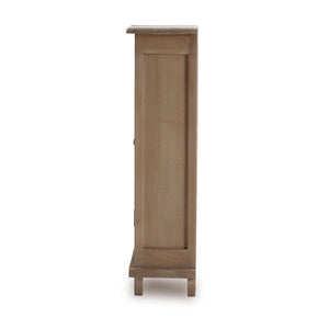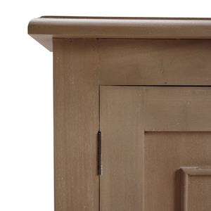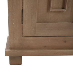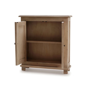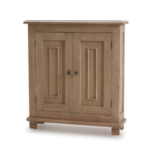 Crafted from solid mahogany and finished in our light Sandbar finish, this cabinet ensures durability and long-lasting use. The molded edge rectangular top and two paneled doors provide ample storage space for linens, dishes, books, or other household items, keeping your space organized and clutter-free.