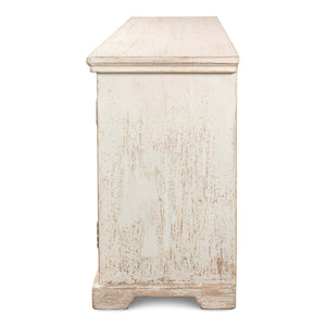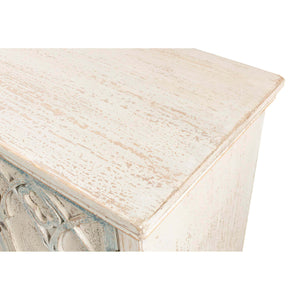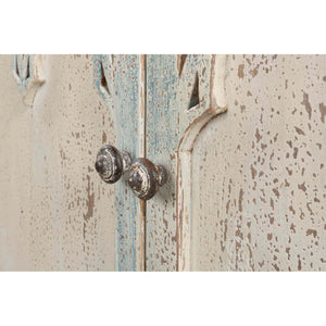 This piece is crafted in pine and features an antique whitewashed blue finish.