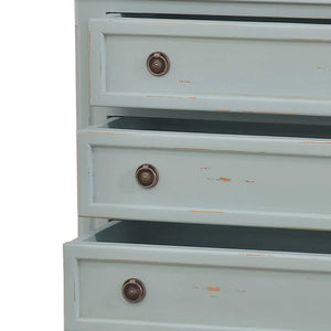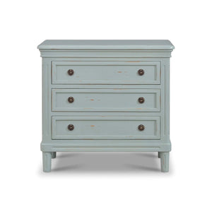 The Rustic Painted Nightstand - brings a perfect blend of charm and functionality to your bedroom. Crafted from solid mahogany, this nightstand offers long-lasting durability while showcasing a timeless rustic and neo-classic design. Its lightly distressed Duck Egg Blue painted finish adds a touch of sophistication, creating a soft, elegant appeal.