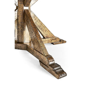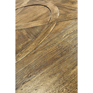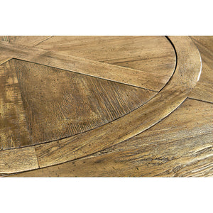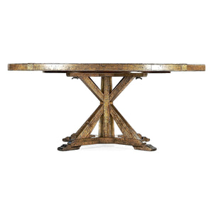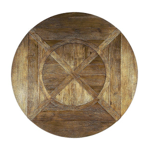 Rustic Round Dining Table - Medium Brown, A large round dining table in a medium brown finish with a rustic finish showing exposed saw marks and set on a bracketed country kitchen base, the table also has a built-in self-storing lazy susan.