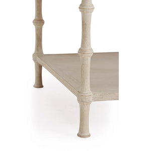 The Rustic Washed Coffee Table blends timeless design with modern craftsmanship, making it the perfect statement piece for refined interiors. Its two-tier structure showcases a striking patchwork top of acacia wood, meticulously crafted in a parquetry board pattern reminiscent of historic flooring. The washed acacia finish enhances the natural beauty of the wood grain, lending a soft, organic feel to any space.