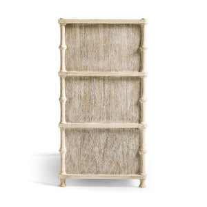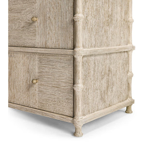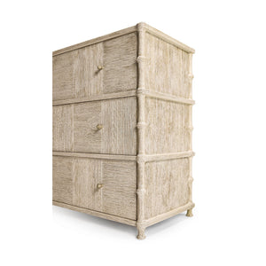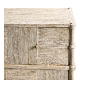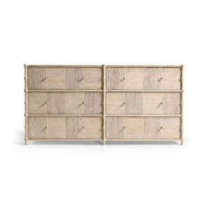 Elevate your space with the Rustic Washed Dresser, crafted from acacia and oak wood with a washed finish for a relaxed, sophisticated feel. The reeded parquet drawer fronts add texture, while bamboo-inspired molding enhances its artisanal charm.