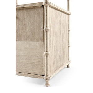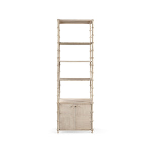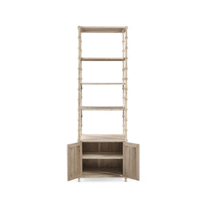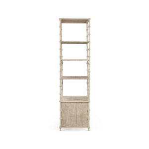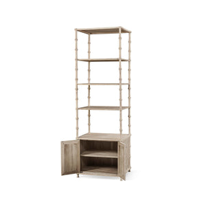 Introducing the Rustic Washed Etagere, a masterpiece of country-style elegance. This four-tier shelving unit, measuring 28" W x 24" D x 86 5/8" H, has a sophisticated wash-painted finish and a charming two-door cabinet below.