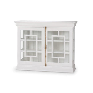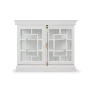 A modern homage to 18th-century European design, the Small French Provincial White Credenza brings refined symmetry and architectural elegance to contemporary interiors. Framed in a true white painted finish, its glass-paneled doors feature geometric fretwork in a stylized pattern evocative of classic French motifs. Behind each panel, a true white painted interior offers contrast and brightness, perfect for showcasing curated collections or fine tableware.