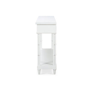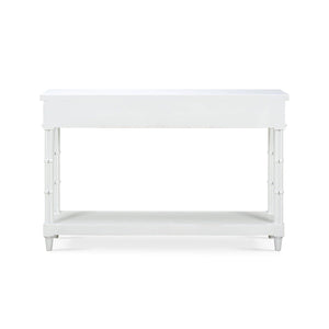 Introducing the Small Regency Style Painted Console Table, a masterpiece made from high-quality mahogany and finished in a lightly distressed architectural white finish. This table embodies timeless elegance with its cluster column form legs, adding a touch of classic Regency style to any room.