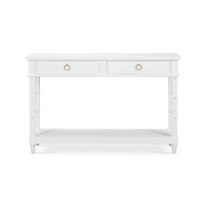 Designed for both style and functionality, this console table features four spacious drawers adorned with chic ring pulls, providing ample storage for your essentials.