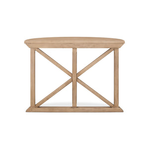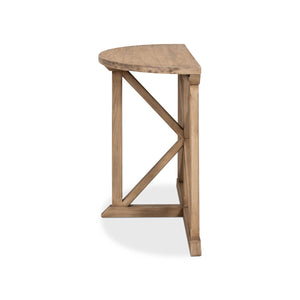 The Vineyard Demilune Console Table is a stunning piece that brings a touch of nature into your home. Made from pine, it has a natural and rustic look that will instantly warm up any space. The flaky pine finish gives it a one-of-a-kind texture and depth, while the half-round demilune top sits gracefully atop a geometric base. The simple chamfering on all elements soften each edge, creating a smooth and elegant look.