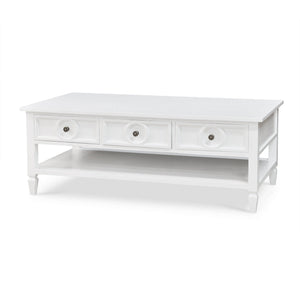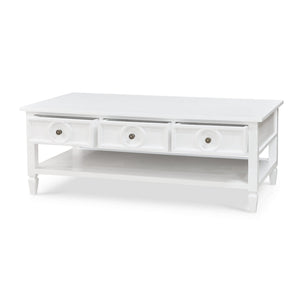 Featuring three spacious drawers, this coffee table provides ample storage for keeping your living space organized and clutter-free. The open lower shelf offers additional space for displaying books, magazines, or decorative items. Crafted from solid mahogany, this coffee table is built to last, ensuring it will be a cherished part of your home for years to come.