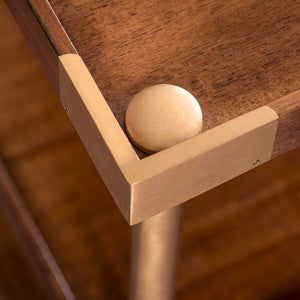 With a warm oak finish to the acacia woods and an antique brushed brass detailing that adds a touch of refined sophistication, elevating the overall appeal of the piece. Let the intricate accents become the centerpiece of conversations and add a touch of luxury to your home.