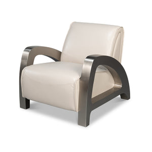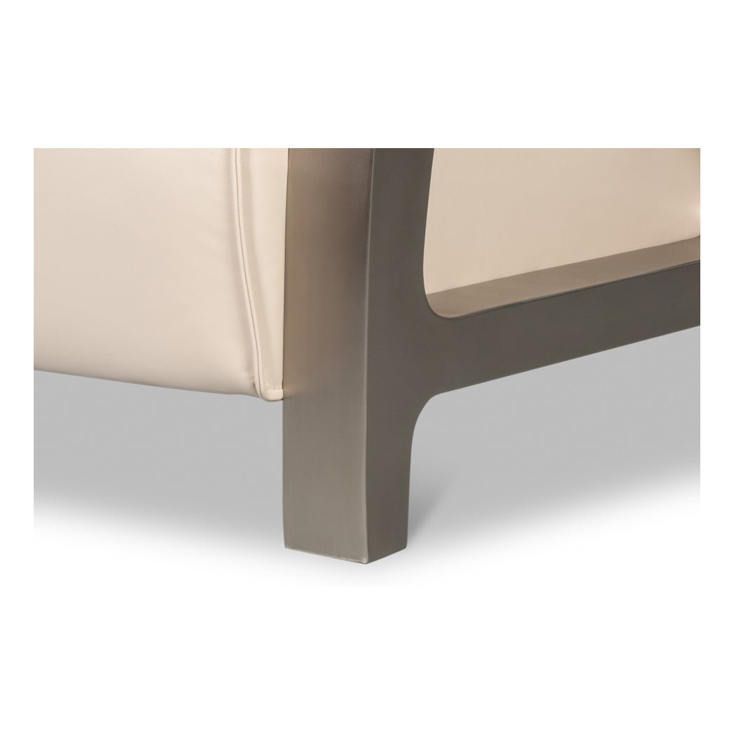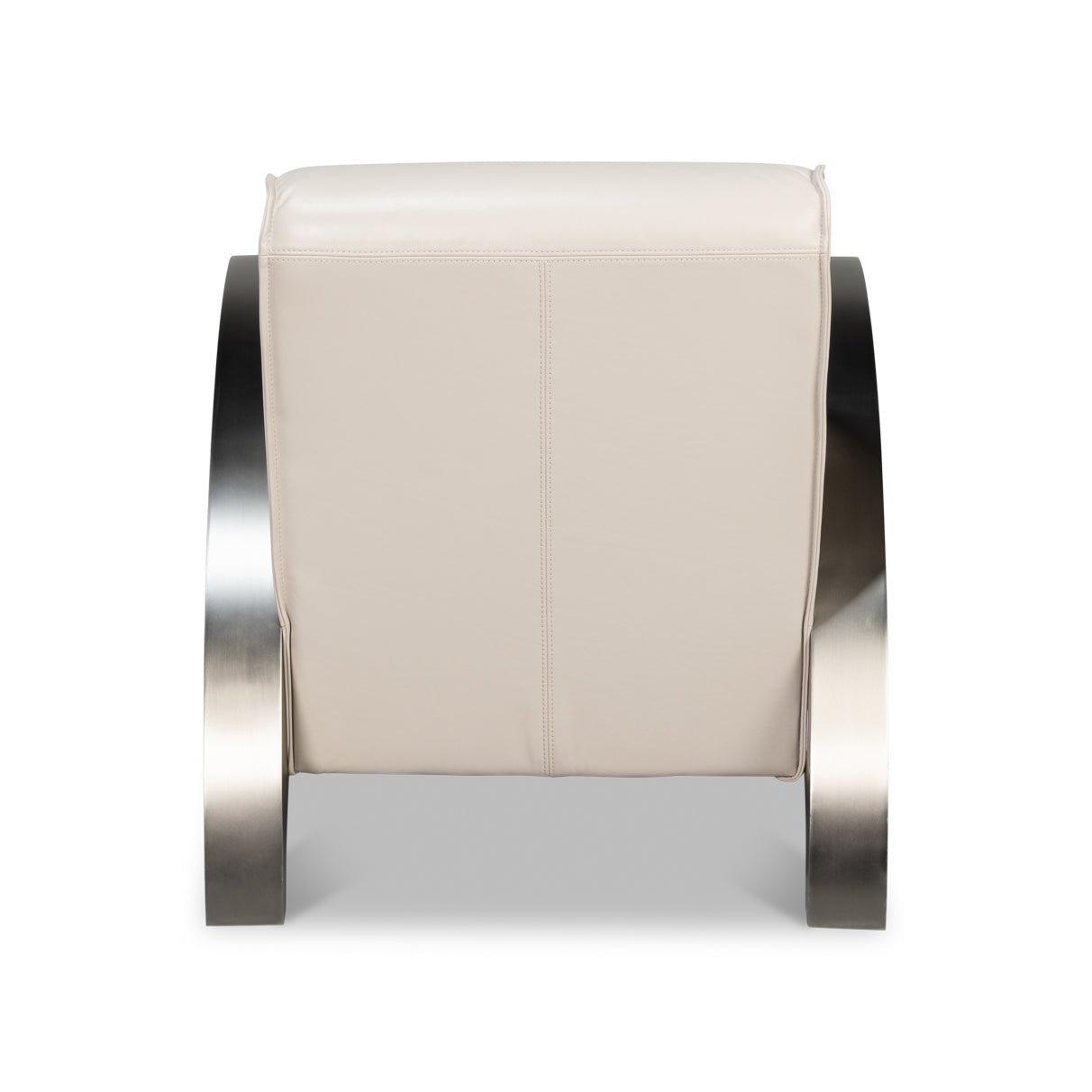 The Industrial White Leather Armchair is a bold statement of modern design and luxurious comfort. Upholstered in supple top-grain Crystal white chair leather, it offers a sleek and sophisticated look that complements its brushed stainless steel arms and base.