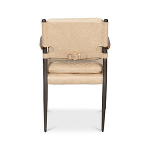 This Mid-Century Modern Leather Armchair - Cappuccino Cream combines sleek lines with refined comfort. The quilted cappuccino cream white leather upholstery offers a sophisticated texture, while the slim metal frame and warm wooden armrests highlight the chair’s elegant silhouette.