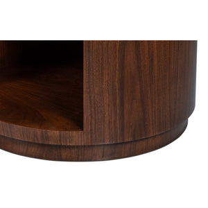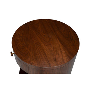 The Mid-Century Modern Round End Table pairs sleek design with functional versatility, making it the perfect companion to contemporary and transitional interiors. Crafted in a warm walnut finish, this piece features a refined circular profile that emphasizes symmetry and clean lines. The brass hardware detail adds a subtle touch of elegance, highlighting its mid-century inspiration.