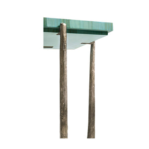 Supporting this top is a gracefully curved base, crafted from wax-cast stainless steel with an organically textured finish. Ideal for elevating any sophisticated living space, this end table seamlessly blends organic inspiration with modern refinement.