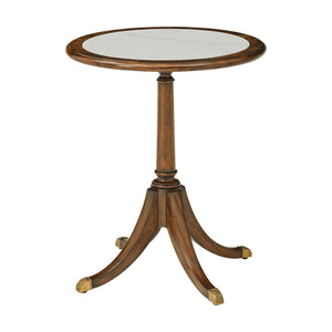 The Classic Round Marble Top Accent Table brings refined Regency-era style into the modern home with its elegant proportions and luxurious craftsmanship. The round top features an inset marble top with a wooden border.