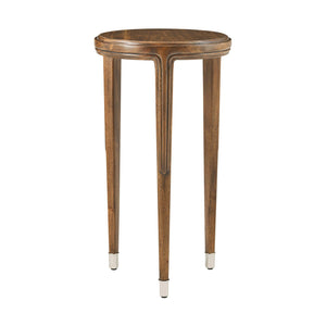 The Walnut Art Deco Round Accent Table embodies timeless sophistication with its sleek, decorative motif and rich figured walnut construction. Showcasing a refined silhouette with tapered legs and subtle inset detailing, this table exudes early 20th-century elegance. The warm wood grain enhances its luxurious appeal, while nickel-capped feet add a modern touch, blending Art Deco charm with contemporary refinement.
