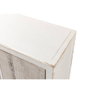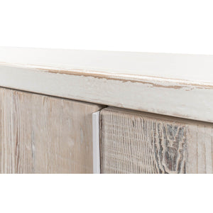 Discover the perfect marriage of rustic simplicity and modern appeal in our Antique White Sideboard. The antiqued white pine wood, paired with weathered finish doors, creates a statement piece. Raised on a square plinth base, this cabinet effortlessly blends tradition with contemporary design.