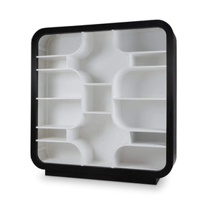 Playful in form yet rooted in functional minimalism, the Black and White Scandinavian Modern Open Bookshelf transforms storage into sculpture. With a modular grid of softly curved cubbies, it offers a visually striking backdrop for books, ceramics, or collected objects. The fluted frame is finished in a black, while the interior is painted in a bright True White for brilliant contrast and tonal depth.