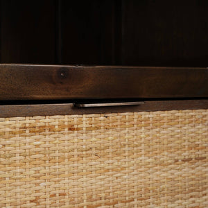 The cabinet features large glass panels, and interior LED lighting perfect for showcasing your cherished collectibles, books, or decorative pieces. Additionally, the rattan-wrapped four spacious drawers at the bottom offer convenient storage for other essentials, making this piece as functional as it is stylish.