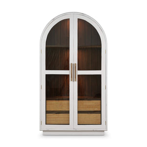 The arched top adds a unique architectural element, while the gold-tone hardware provides a touch of luxury. Ideal for living rooms, dining rooms, or home offices, this versatile piece effortlessly enhances any space.