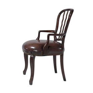 A mahogany dining armchair, the shaped waisted back with serpentine uprights above an upholstered seat, on elegant moulded cabriole legs terminating in spade feet. The original very large set designed by George Seddon circa 1800.