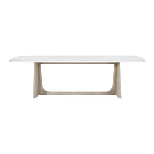 Grey Oak Modern Quartz Top Dining Table, is the epitome of form and function. This rectangular dining table features a beautiful Gan Edan quartz and handcrafted quarter straight-cut oak veneer for the trestle-style base.