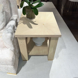 Couture furniture is adorned with resplendent details, and the Hollywood Regency Minimalist End Table - Light Finish exemplifies this ethos with sculptural clarity. Meticulously artisan made, its bold architectural frame features clean lines, block-style legs, and an open lower shelf for elegant display.