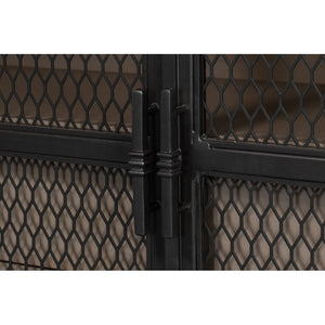The metal doors, showcasing an exclusive design with intricate mesh detailing, invite a subtle peek at the treasures held within, while providing a secure enclosure. Behind these doors lies a symphony of storage. With drawers, wine glass racks and illuminated shelving.