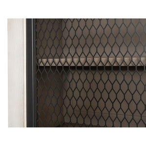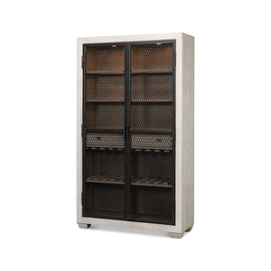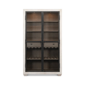 Introducing the Industrial Bar Cabinet, a statement piece where functionality and sophisticated design converge. Crafted with the modern connoisseur in mind, this bookcase wine/bar cabinet features a blend of soft white tones and industrial metal door accents that offer a contemporary twist.