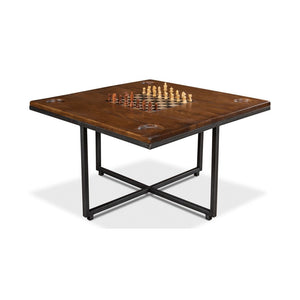 Elevate your living space with this versatile and stylish Industrial Coffee Table Game Table, crafted from recycled wood and featuring a beautiful fruitwood finish. The table is designed with a built-in chessboard, with built-in storage for the included game pieces, making it perfect for spontaneous game nights or casual play.