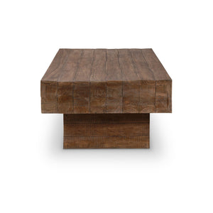 Introducing our Industrial Teak Coffee Table in a stunning distressed Tuscan brown finish. This unique piece combines contemporary design with industrial appeal, creating a striking focal point for your living space. The clean lines and bold structure bring a sense of modern sophistication, while the distressed teak adds warmth and natural character.