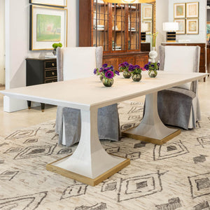 The Long Art Deco Dining Table features a stunning whitewash oak that radiates pure refinement. The surface showcases the natural beauty of the wood, adding a touch of warmth and character to your dining area.
