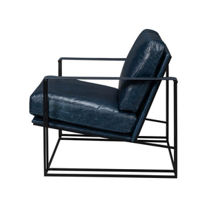 Introducing the Manhattan Blue Leather Armchair, a masterpiece of contemporary design and luxurious comfort. Upholstered in top-grade Chateau Blue leather, this chair is a statement piece that adds a modern touch to any space. Its unique double iron frame not only provides robust support but also contributes to its sleek and stylish look.