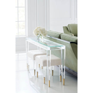 Mid Century Acrylic Console Table, with a clear acrylic frame, its see-through design adds modern charm to a room while still feeling visually light and airy.