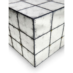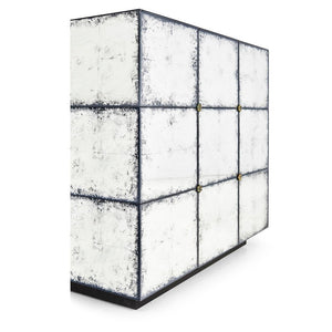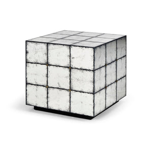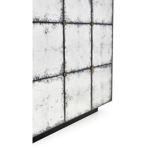 Mid Century Mirrored End Table - Designed for the discerning eye, this table is a symphony of luxurious materials and meticulous details. Crafted from sturdy hardwood solids, each panel is lavishly adorned with antiqued eglomise glass, creating a shimmering surface that captures and reflects light, enhancing the ambiance of any room.