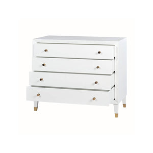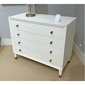 With four spacious drawers, this chest provides ample storage space for all your essentials. The polished brass hardware adds a touch of luxury and sophistication, while the tapered legs with brass ferrules provide a sturdy and stable base.