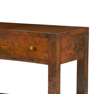 This modern burl nightstand is a true masterpiece of craftsmanship, designed to bring a touch of elegance and sophistication to any bedroom. Made with exotic burl walnut veneers, it boasts a unique concave form front that catches the eye and adds an element of interest to your room.