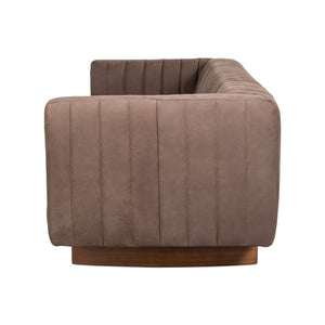 The Modern Channel Tufted Leather Sofa seamlessly blends sleek design with luxurious comfort, making it an elegant centerpiece for contemporary spaces. Upholstered in premium Scotland Grey top-grain leather, it exudes sophistication, while the vertical channel tufting adds texture and visual interest.